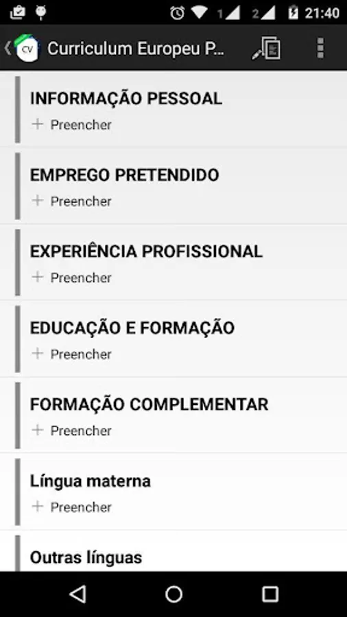 Best app to generate your CV on the European model to fill the cv with your data and generates various models of curriculum vitae.