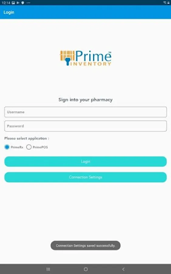 Second step is to select the product(PrimeRx or PrimePOS) and login to the app using existing users who has permission to add physical inventory.
