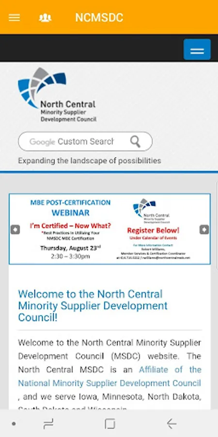 The North Central Minority Supplier Development Council (NCMSDC) helps connect minority-owned businesses and corporations throughout the Midwest region in Minnesota, Wisconsin, North and South Dakota, and Iowa. It promotes an exchange of information between corporate members and Minority Business Enterprises (MBEs) to ensure proper partnering, fit and cooperation.The NCMSDC is one of the regional councils of the National Minority Supplier Development Council (NMSDC) in New York, NY and is a 501(c)(3) non-profit organization.