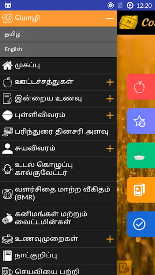 * Diet & Weight Management Tool with Multilingual Interfaces & Native Food Items ( English & Tamil )