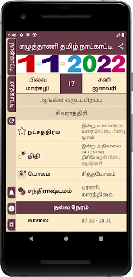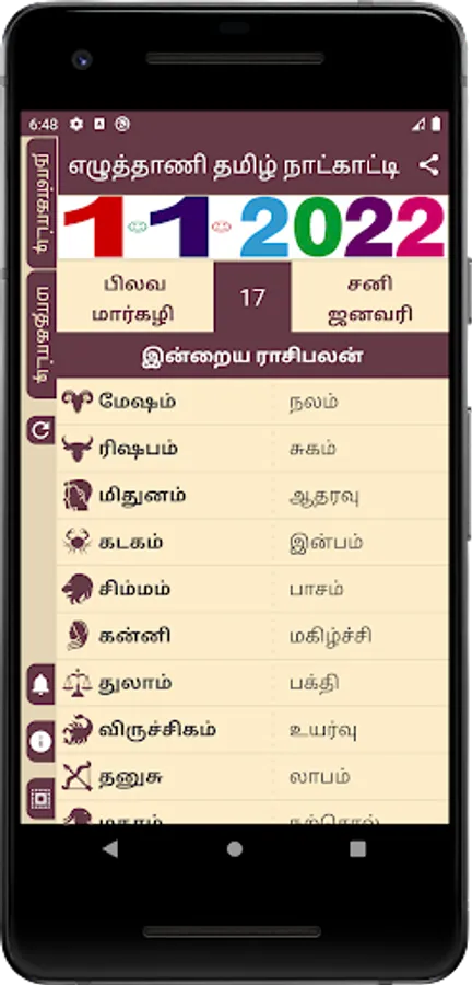 5. Notification for Natchathiram & Chandrashtamam for registered Stars.
