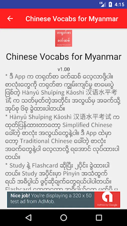For those learning or brushing up their Mandarin Chinese, this app can be used to learn vocabularies.