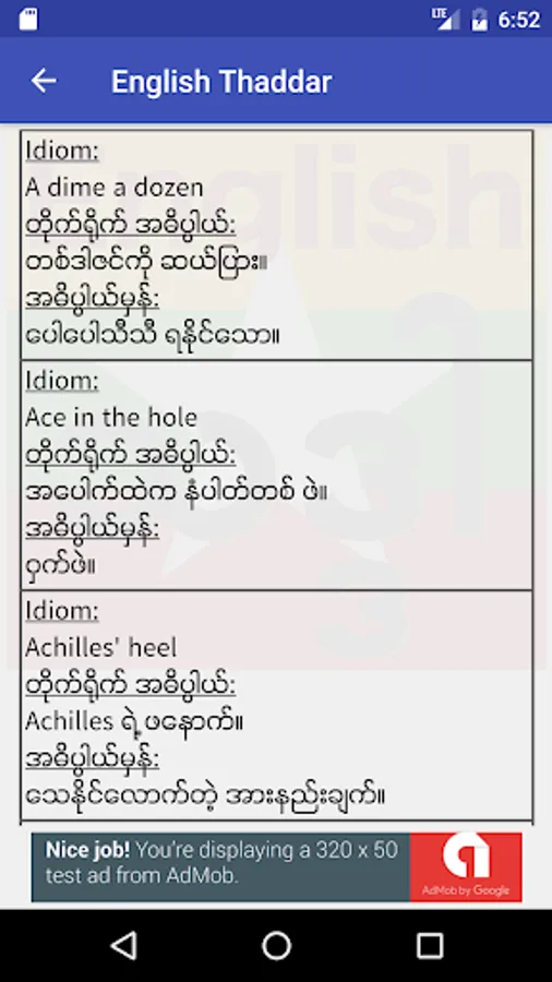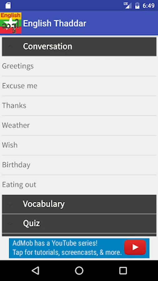 * English Thaddar App uses Google's Admob advertising service. Their privacy policy can be found at https://www.google.com/intl/en/policies/privacy/.