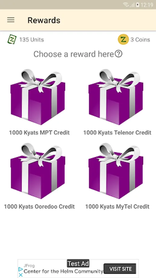 Zyzawah offer games, outcome of which may be used to redeem top-up cards for networks in Myanmar.