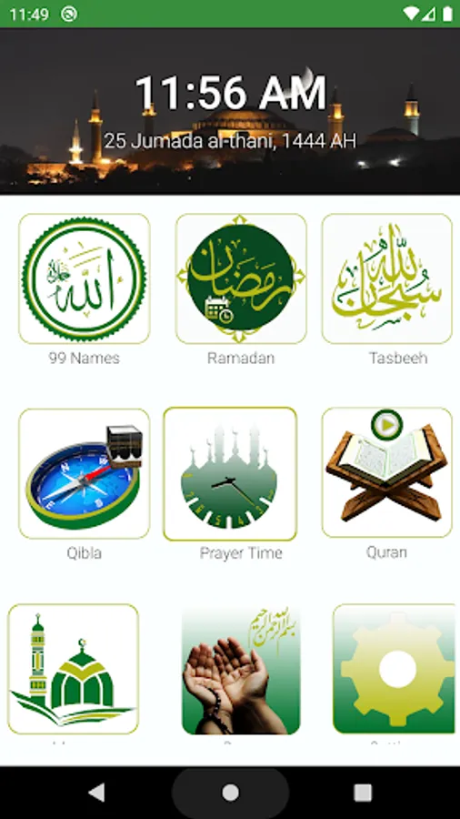 Listen to the Holy Quran Surahs in high-quality Arabic and English audio with the offline Quranic Surahs feature. Accurately determine the prayer timings according to the Hijri date and time with the accurate prayer timings feature.