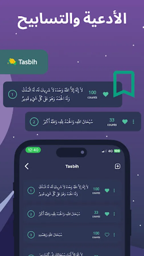 -Smart Tasbih: Set your tasbih count, start, reset, save it, and renter anytime to complete your tasbih