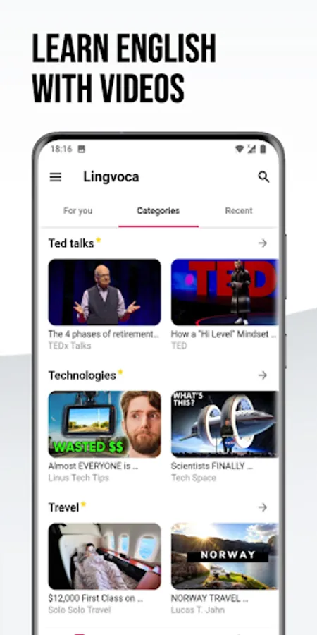 Lingvoca is a mobile application that makes English learning enjoyable, convenient, and efficient. The app is designed to help users enhance their English skills through interactive English videos, including songs, news, and educational English videos.