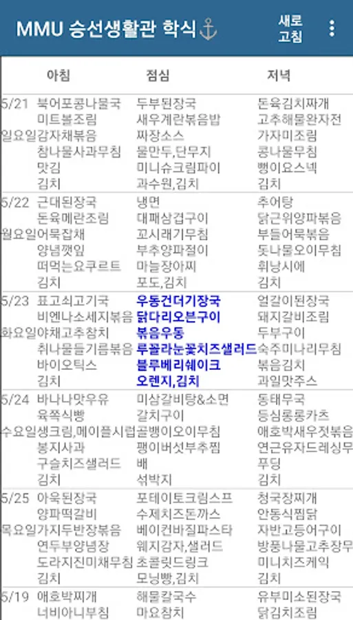 목포해양대 승선생활관 학식 메뉴판 Screenshots
