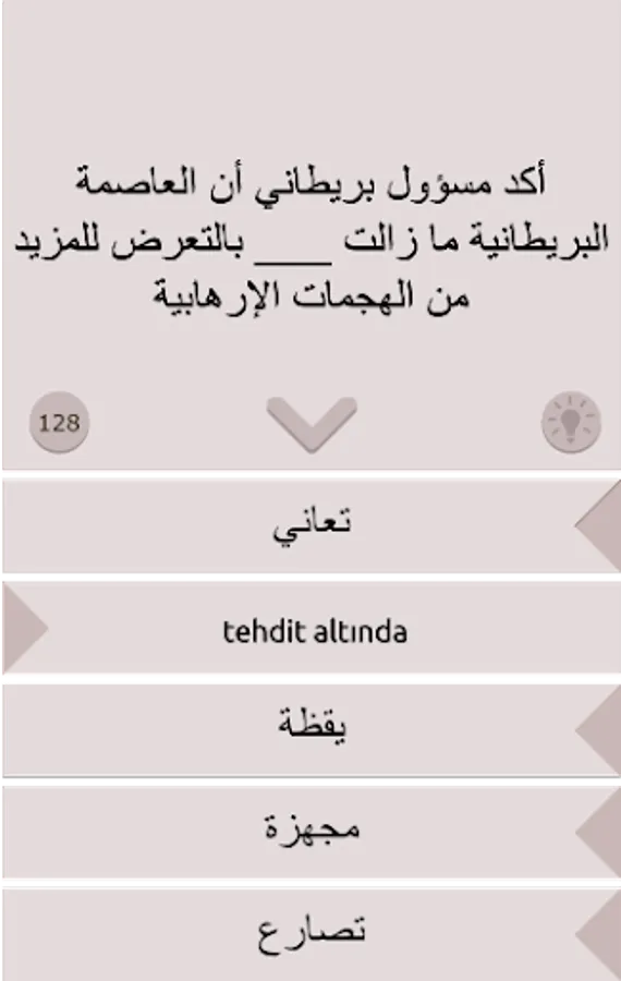 Words in options have been translated into Turkish. You can look at the Turkish meanings by keeping the choices pressed.