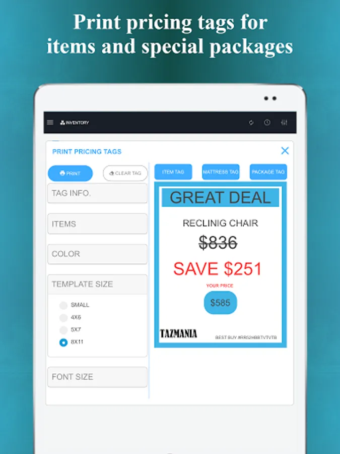 - Print customized pricing tags