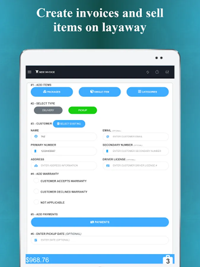 - Sell items on layaway