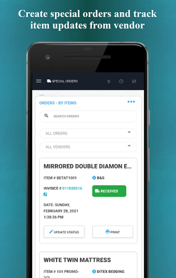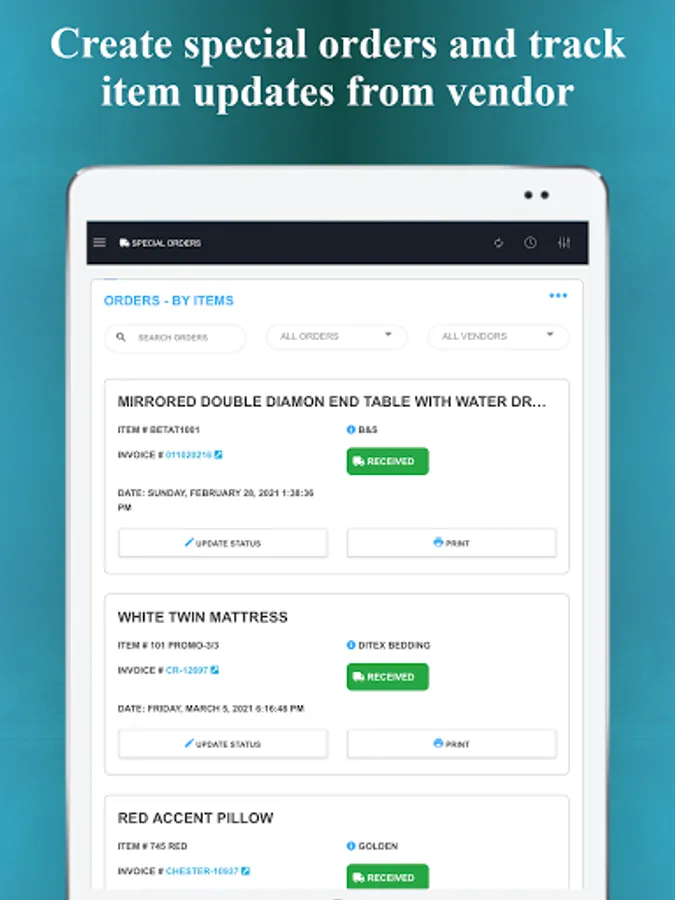 - Track special orders from vendors