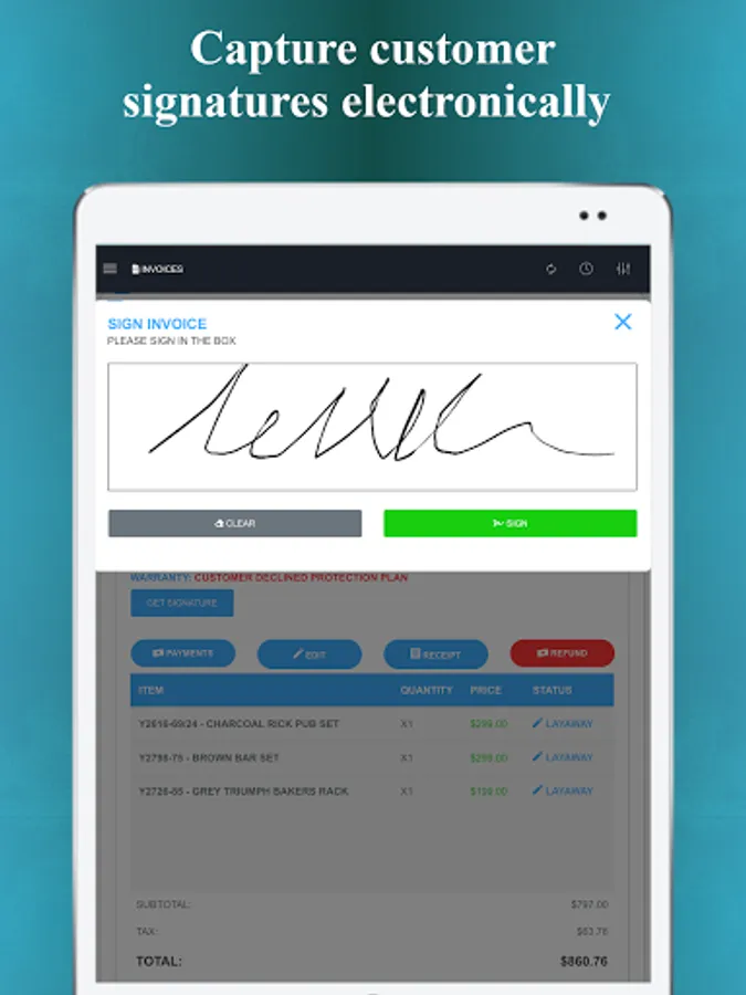 - Paperless system, send invoices via email/text