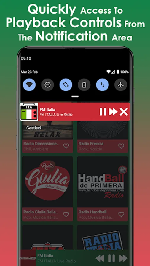 You can also listen to the most tuned stations in much of the Italian territory, listen to the best hits and of course all the most representative Italian radios at any time and place, you will find live radio stations highlighting local music as the most listened to in the main cities of this country. You can enjoy this App for free, download it to your cell phone and the best with the most popular fm radios in Italy.