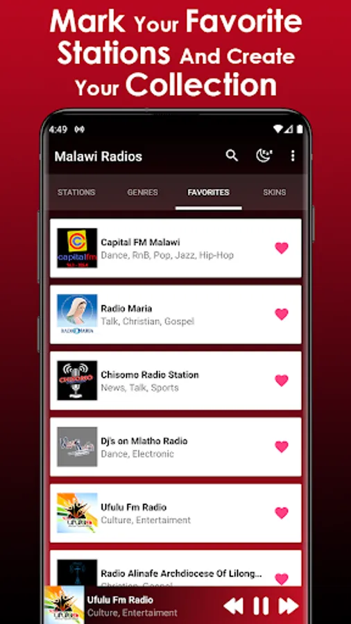 Here you can listen to all Malawi radio stations online for free. So do not hesitate, download it and enjoy it!