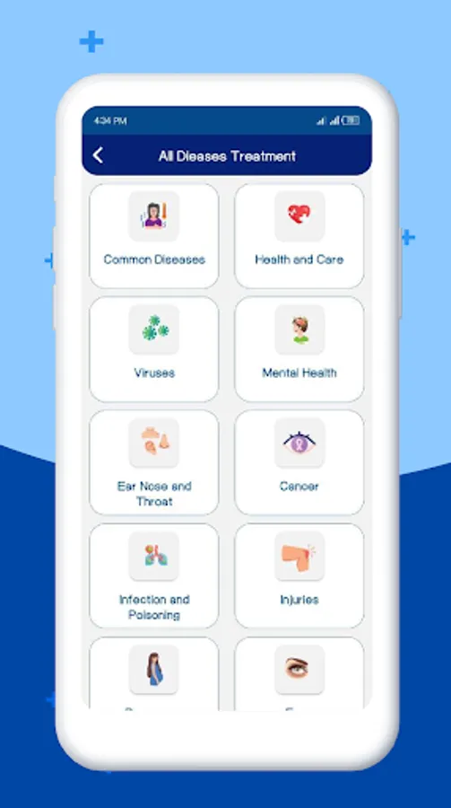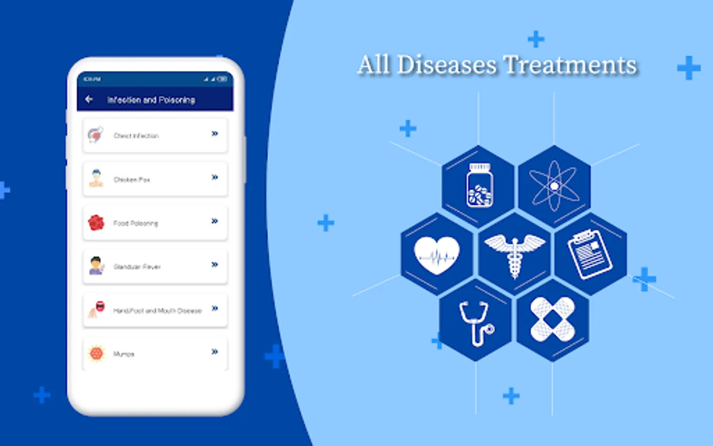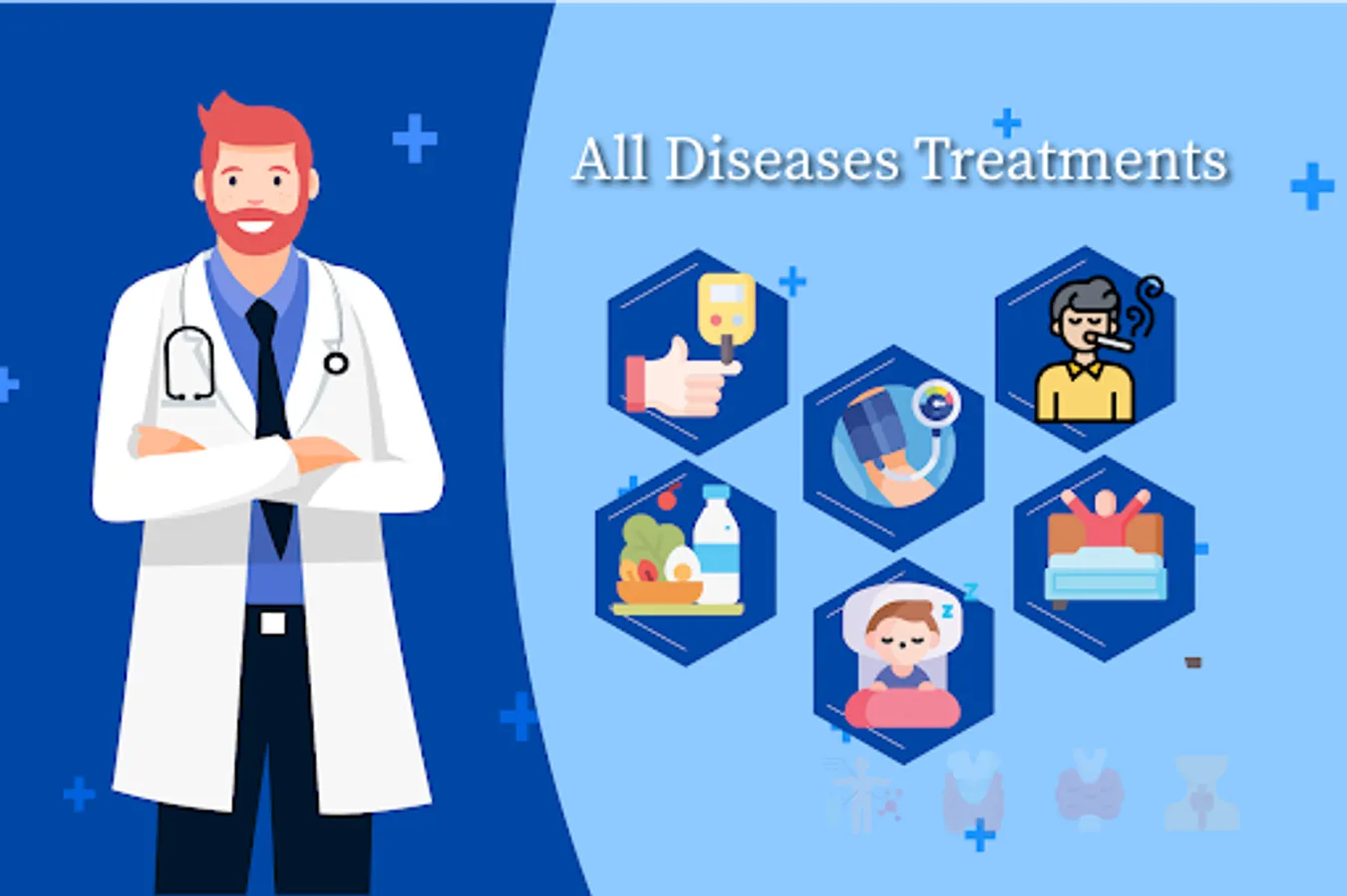 All major categories relevant to diseases including common diseases, health and care, viruses, mental health, ear, nose and throat relevant diseases, cancer, infection and poisoning, injuries, pregnancy relevant complications, eyes relevant and almost every part of body relevant diseases are added. All common diseases including allergies, cold and flu, diarrhea, headaches, hepatitis, and their types are included.