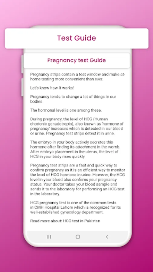 The app also provides detailed information on the different types of pregnancy tests available, including home pregnancy tests and blood tests. Users can learn how to interpret their results accurately and understand the various factors that can affect the test's outcome.