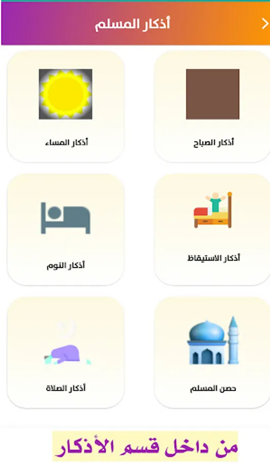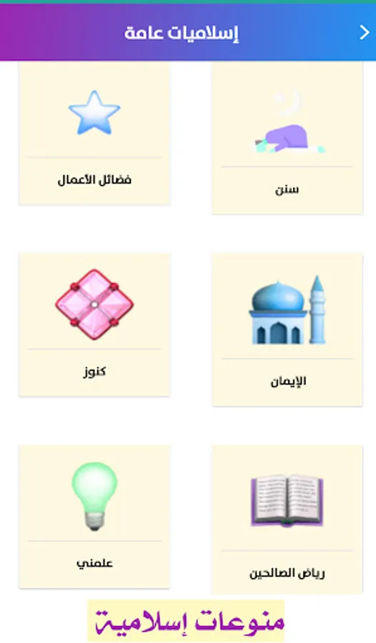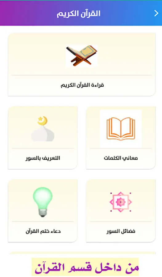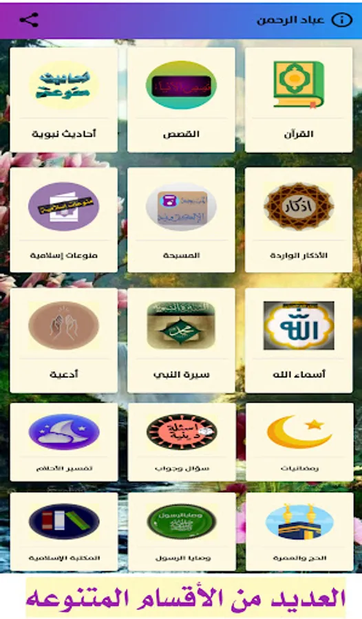 The Benefit for People application contains many sections, such as the Qur’an section, the stories of the prophets and the companions, and the remembrances