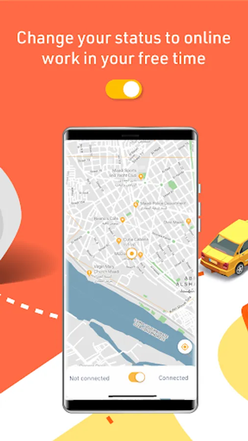 اذا كان مزاجك معتدل وجدولك مناسب، غير حالتك الى " متصل " وسوف تأتيك طلبات العملاء من المتاجر القريبة منك، توجه للمتجر وقم بشراء المنتج للعميل، وتوجه مباشرة للعميل لتسليم الطلب والحصول على قيمة الطلب والتوصيل نقدا.