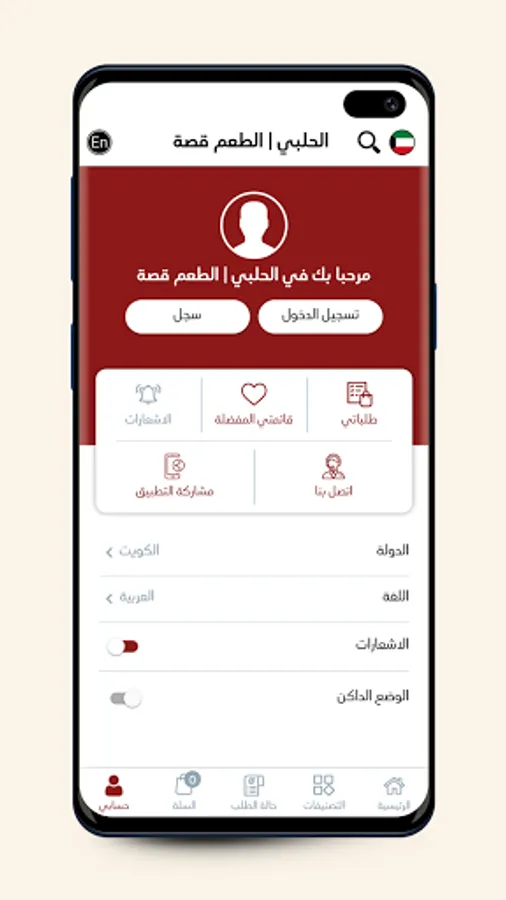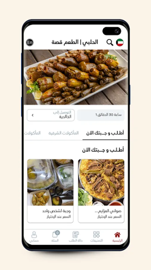 Al7alabi restaurant application is your easy method to order and pre-order the finest dishes. You can easily order your needs with its easy interface that categories the menu. After choosing what you want to eat you can have delivered to you in approximately 2 hours or by choosing a time that suits you through scheduling, another way it to pick it up from the store's location.