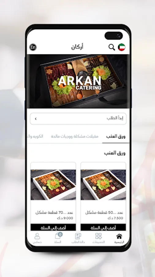 Arkan application is the most perfect way to order food for a gathering. Thanks to the application's friendly user interface; you can navigate through it easily. To order: open the app, click on the category that suits you, and then add what you want to your cart. Finish the ordering process by choosing how to receive it, the preferable payment method and the rest of the required information.