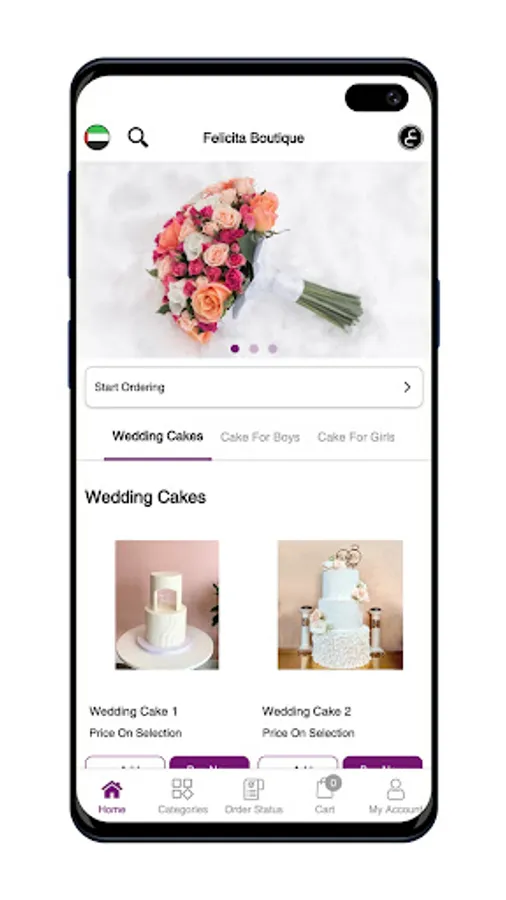 In the world of e-commerce, which is rich in diversity, the Felicita Boutique store appeared with its unique design and smooth user interface, so that we make it easier for you to order and browse in our store to find the design you want for your occasion, whatever it is. To go through the experience with us, just open the application, browse the different designs, choose what suits you and put it in your shopping cart, then we get together to the last steps represented in including your information, specifying the mechanism of receiving and delivery, then we finish with specifying the payment mechanism that you want and waiting for your order to be delivered to you wherever you are.