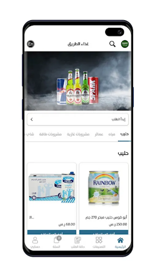In our online store, you will find what you need from various food supplies. With just a few simple steps: Open the application, then click on the category that suits you, to browse our various products and what you like, then add it to your shopping cart. After that, complete the order process by choosing the method of collecting your order and the payment method that suits you, and include the rest of the information.