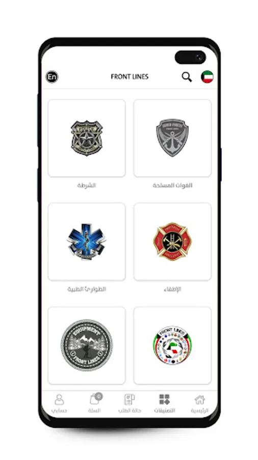 FRONT LINES application is your primary destination if you are looking for distinctive logos You can easily order from the application after opening it, click on the category that suits you, then add the products you like to your shopping cart. After that complete the purchase process by choosing the payment method that suits you and how to get the order, and include the rest of the other required information.