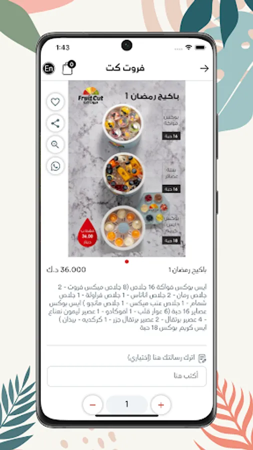 Fruitcut application is the place to get fresh fruit cuts, drinks and more. To use the app for order: open the application, then click on the suitable category, and simply start adding your favorites to your cart. Finish the process by filling the wanted information to have your order.