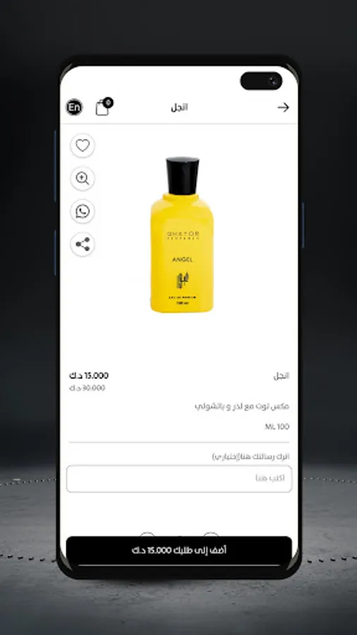 Ghayor Perfumes app where you can find a wide variety of aromatic scents, with different options to suit all tastes. The straightforward interface makes the navigation seamless, all you have to do is open the app and search for the perfume that suits you, add it to your cart, and then choose how to receive your order via ASAP or by pickup