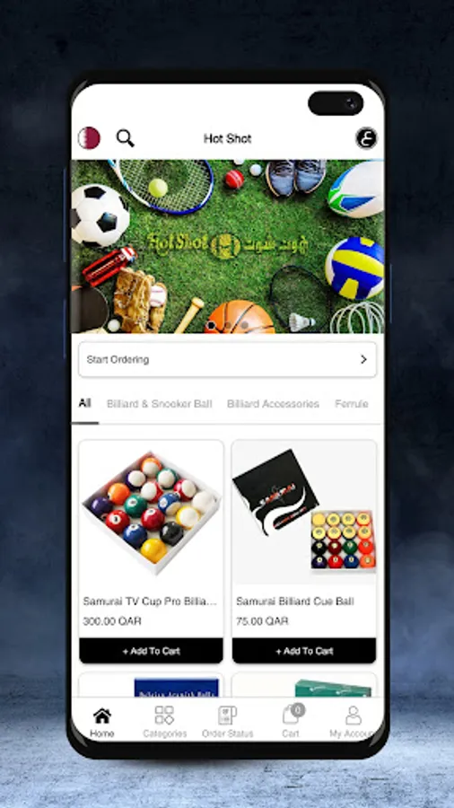 In the Hot Shot application, we provide a wide variety of sports equipment, clothing, and gym . You can distinguish the high quality of our products via following these steps: open the app, click on the category that suits you, and then add what you like to your cart. Finish the order by choosing how to receive it, the preferable payment method and the rest of the required information
