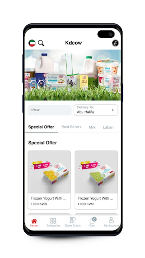 Kdcow application is the easy way to collect your needs of the company's fresh products with simple clicks. Get your order by ASAP delivery or pickup it from Shuwaikh Industrial. Enjoy the exclusive offers on our app with its friendly user interface.