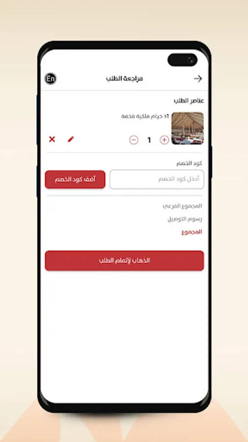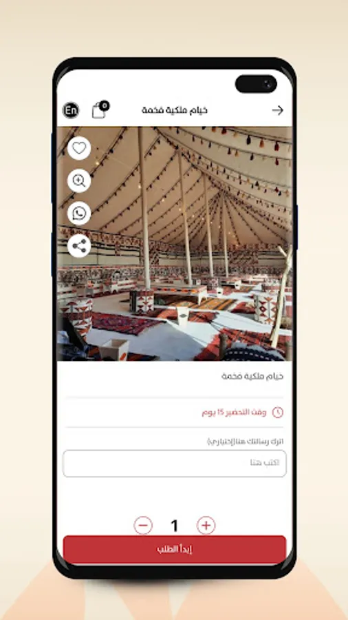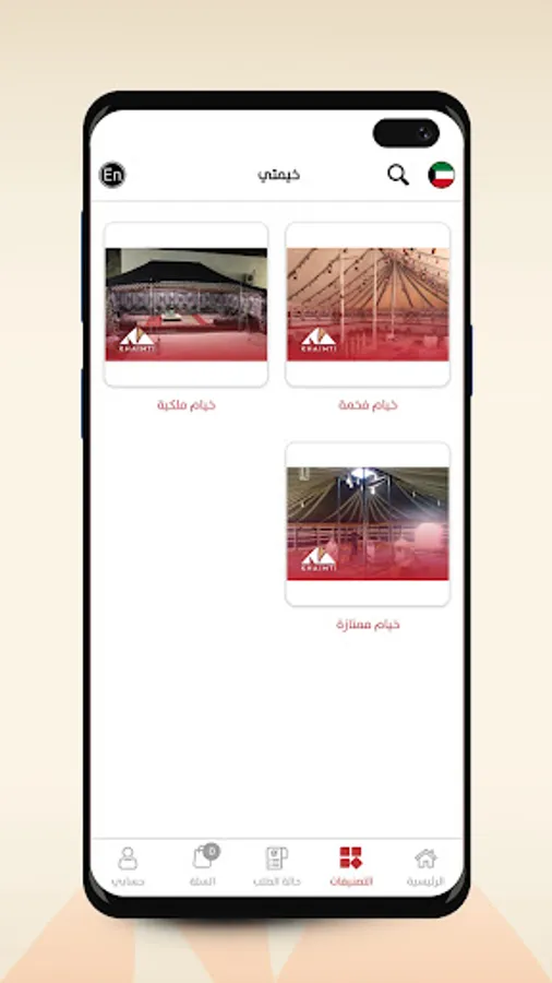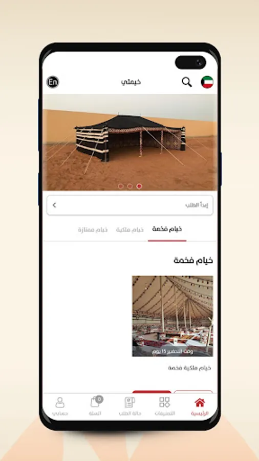 Khaimti application, where you can find the best tents that suits your taste and meet your needs . The straightforward interface makes navigation seamless, all you have to do is open the app, search for the tent you need, add it to your cart, and then choose how to receive your order via ASAP delivery or via pickup.