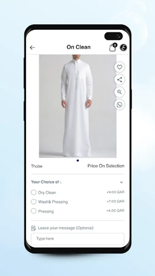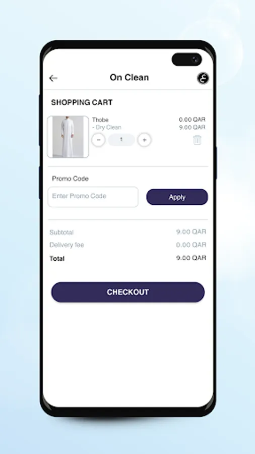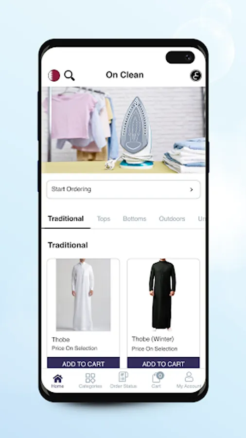 On Clean application is the place to clean your clothes the shiniest way and many other services. All You have to do is open the app then click on the wanted category. Choose your wanted cleaning service then add it to your cart. Continue the process by filling the wanted information to place your order like: the preferable payment method and the delivery information.