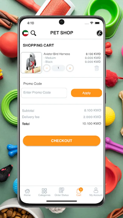 Pet Shop application It's your perfect option that you can find all your pet needs in one place . Choose what you desire via following these steps: open the app, click on the category that suits you, and then add what you like to your cart. Finish the order by choosing how to receive it, the preferable payment method and the rest of the required information