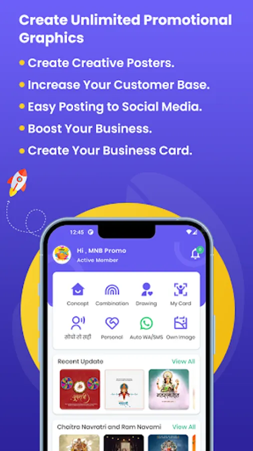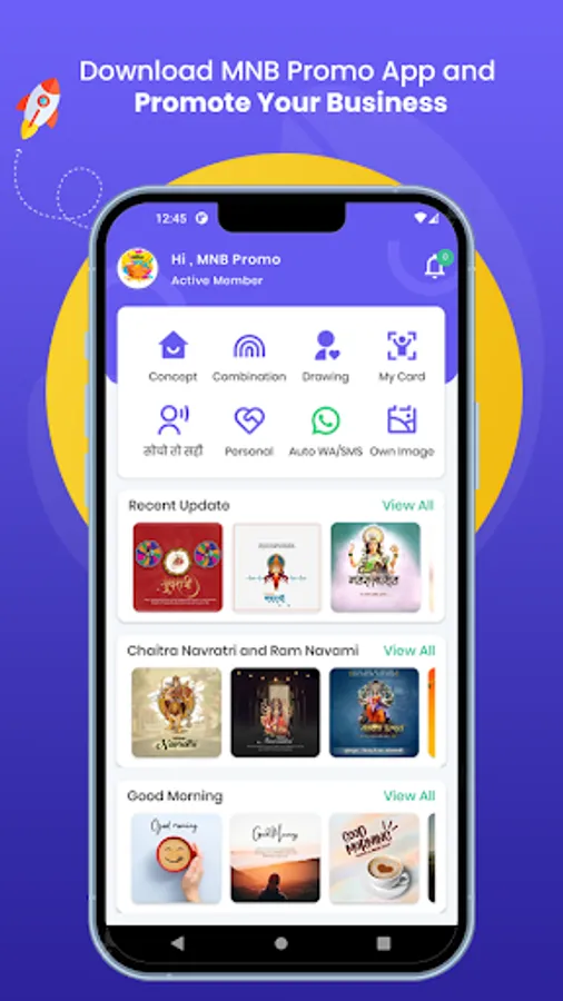 MNB promo app is a promotional app, user can download and share variety of banner poster. Event , Festivals, Days, and many more images or post. you can make your own post with own image, name and personal details. this app is creative app. to personalize your brand and promote over internet or social media.