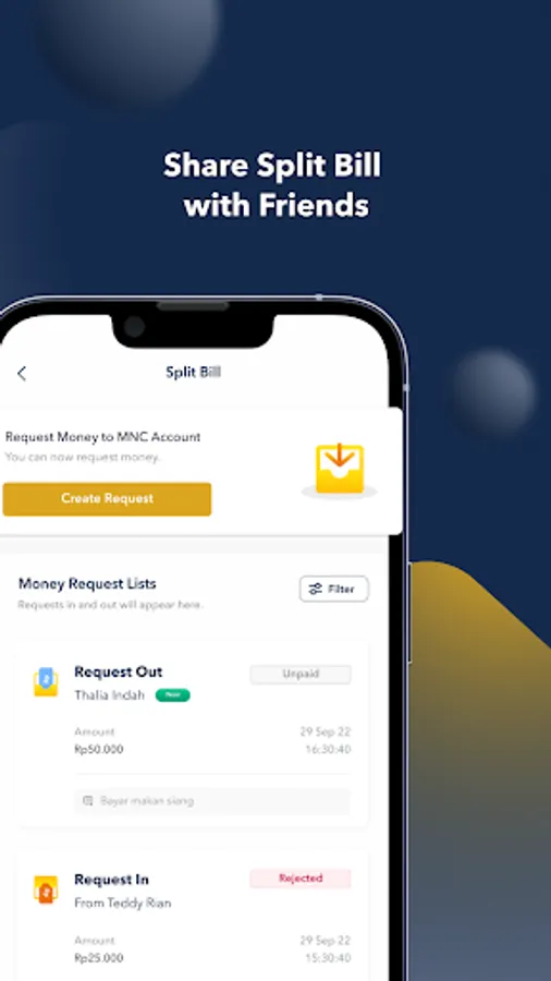 Need to request money to your friends? Try our Split Bill feature to request money.