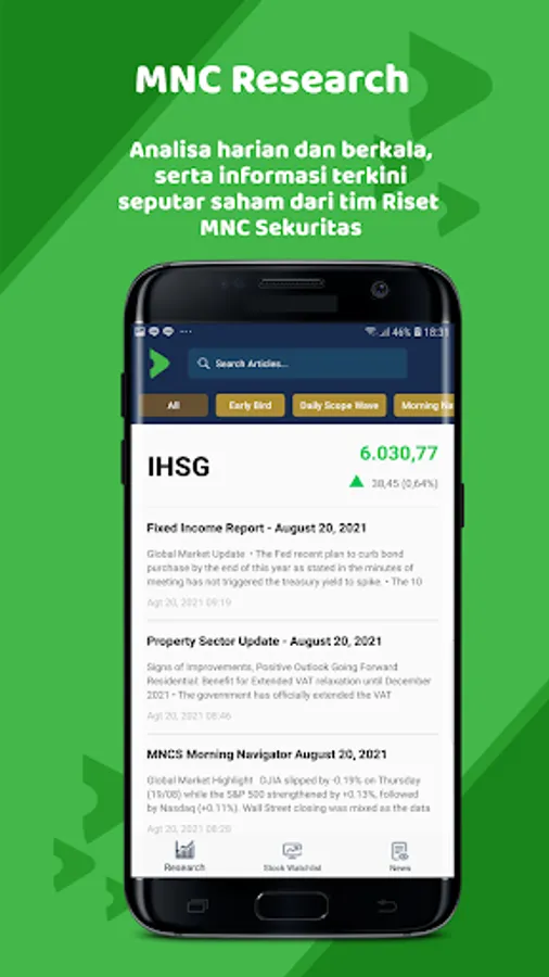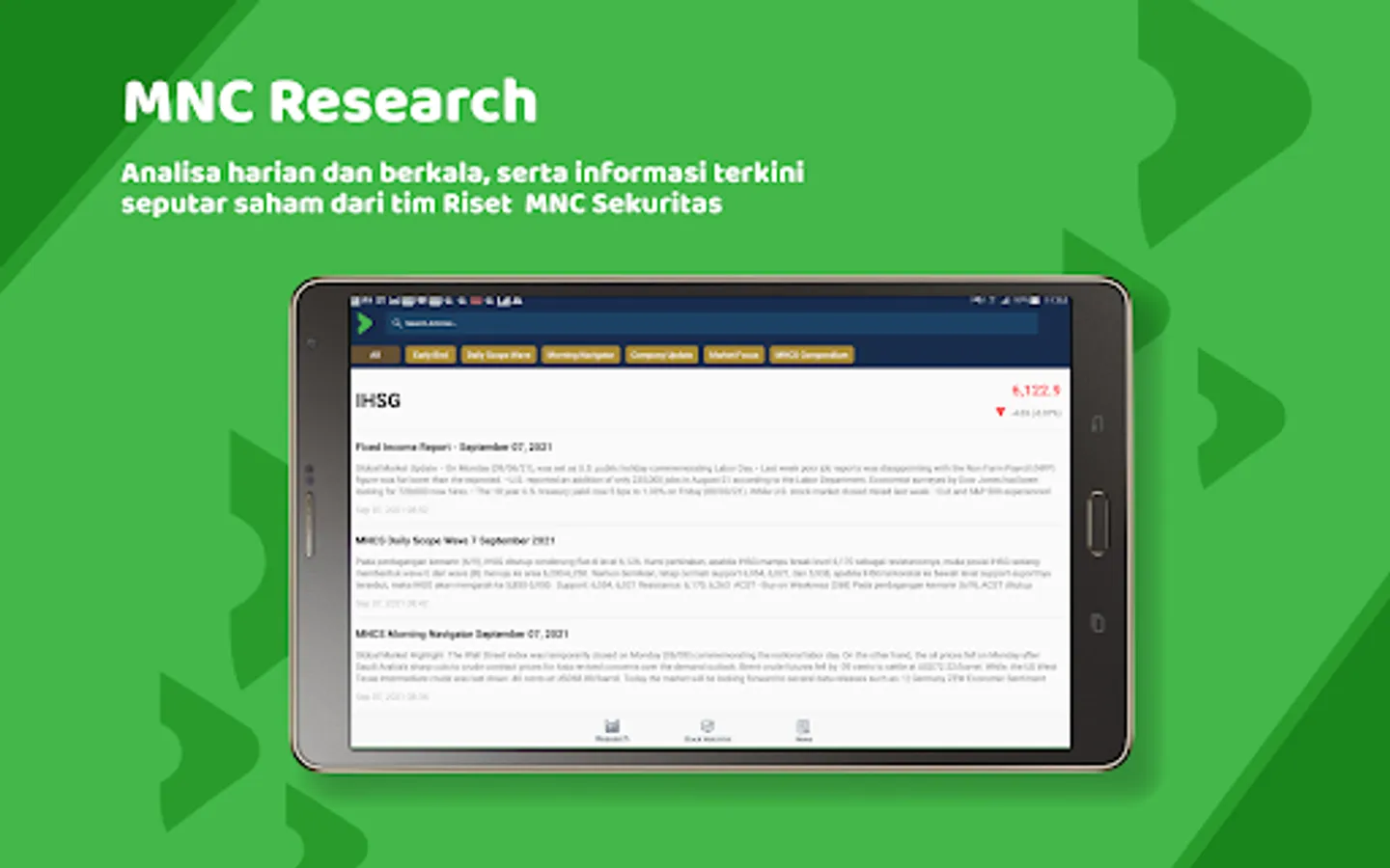 Tersedia informasi riset harian, ekonomi serta pasar modal secara berkala dari analis yang berpengalaman.