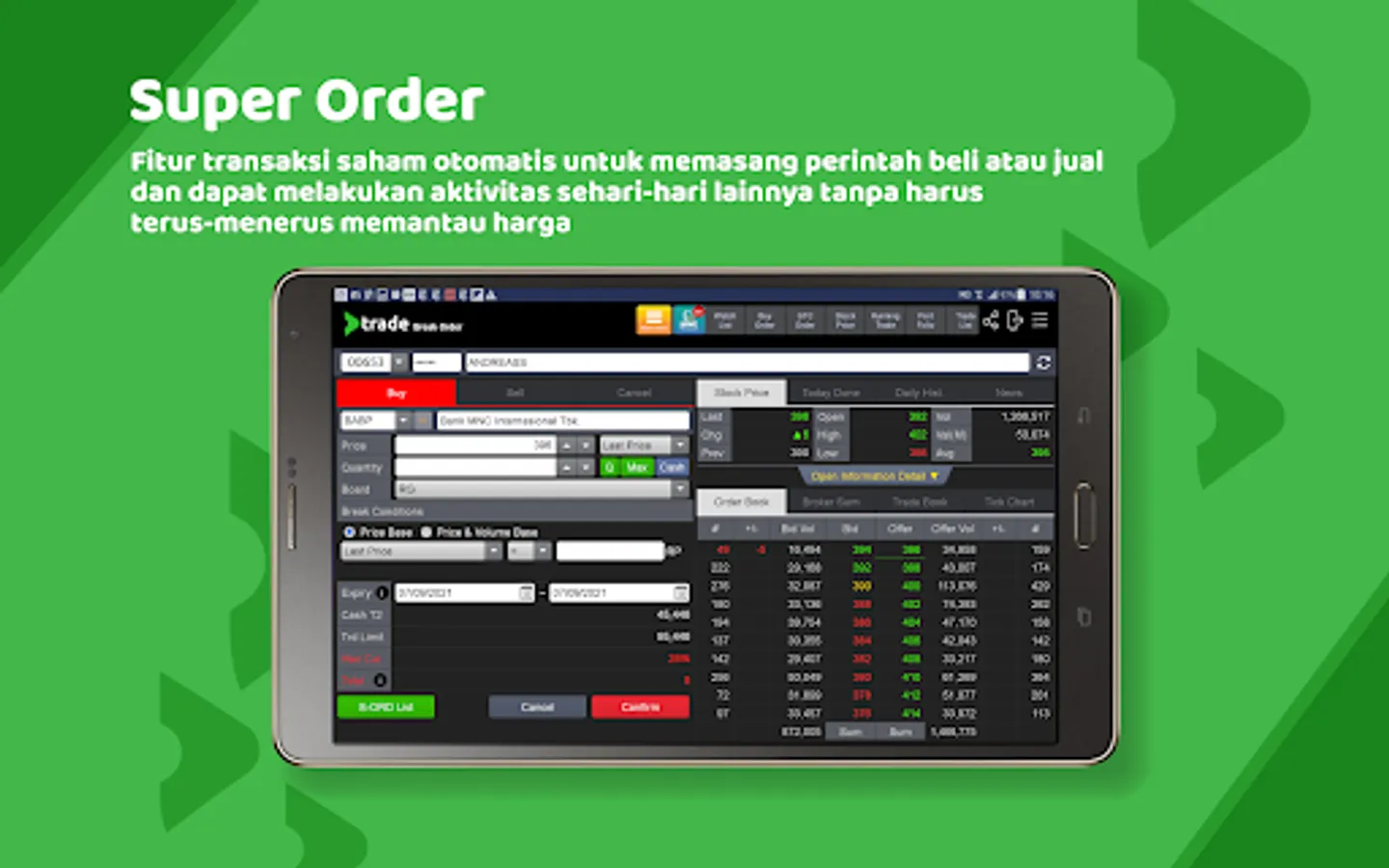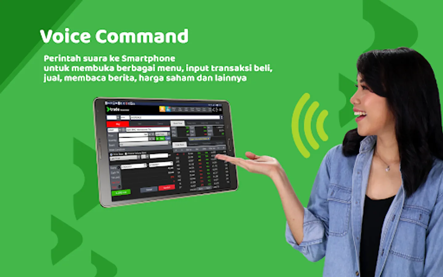 Kamu bisa memberikan perintah suara kepada asisten virtual untuk membuka menu, input order transaksi, membaca berita, mengecek harga saham, dan melakukan aktivitas lainnya di aplikasi.