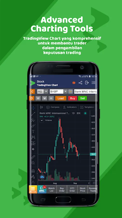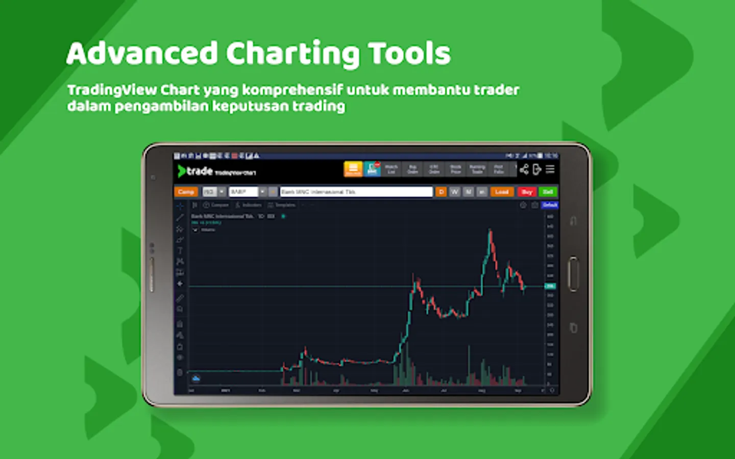 Charting yang komprehensif, dilengkapi dengan berbagai drawing tools dan indikator teknikal yang dapat disesuaikan dengan kebutuhan pengguna.