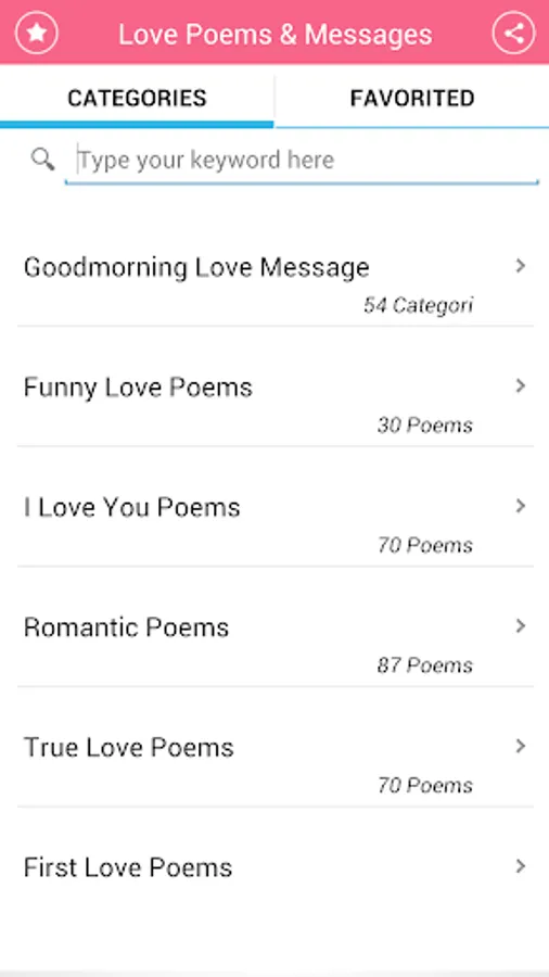 Love Poems And Messages is an application that contains a selection with the best verses and romantic poems and messages that you can find nowadays.