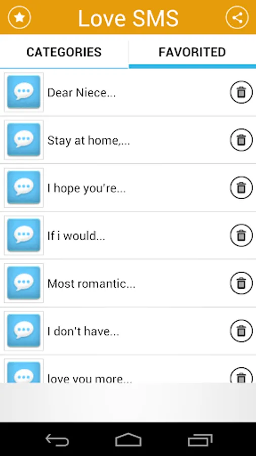 Love SMS application is more than 2000 of love SMS and quotes! Directly send Text to SMS , Email or social network as facebook,twitter...