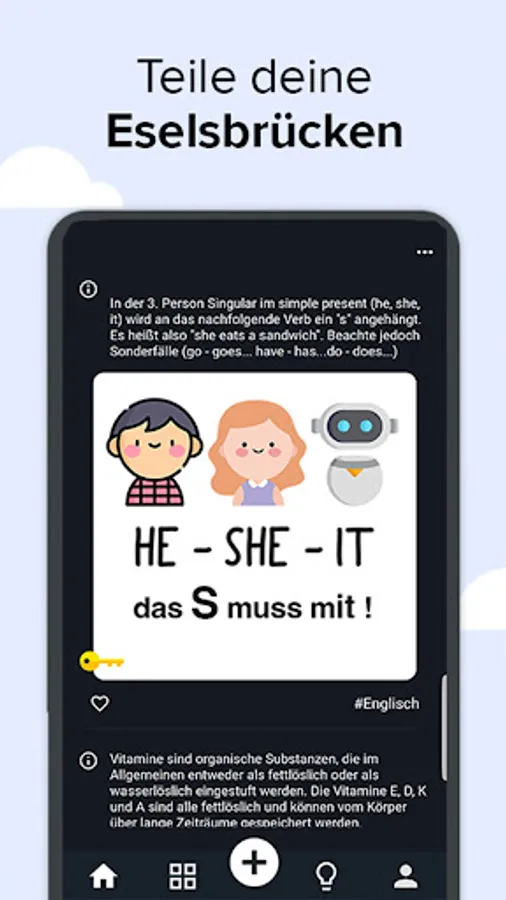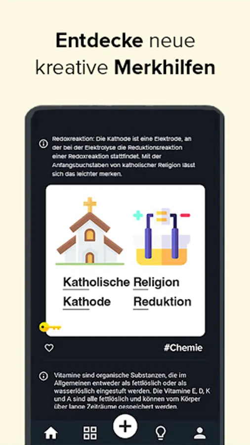 ▸ Discover new memory aids: in different categories such as classic school subjects (English, history, chemistry,...), but also university-specific subjects (mechanical engineering, law, architecture,...)