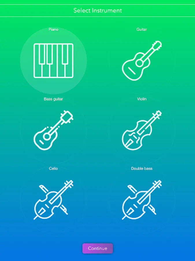 Try the professional version of our app for developing your ear for music by intervals. In this version of the application you can play not only piano or guitar, but also bass, violin, cello, double bass.