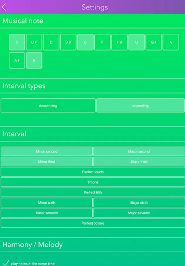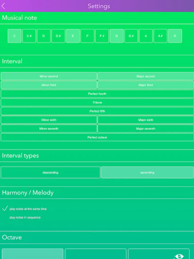 Before starting the lessons, you can choose the level of difficulty of the lessons, specify the intervals and the musical instrument, adjust the octaves and notes. Try to do ear training exercises regularly and systematically. If you have already started to study, then do not let yourself get bored and do not stop in development.