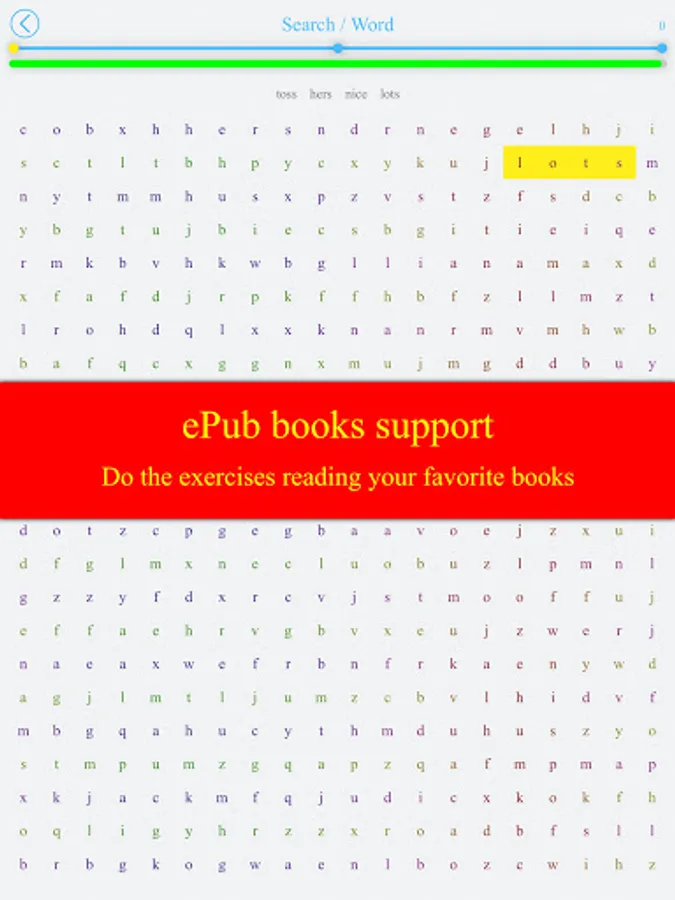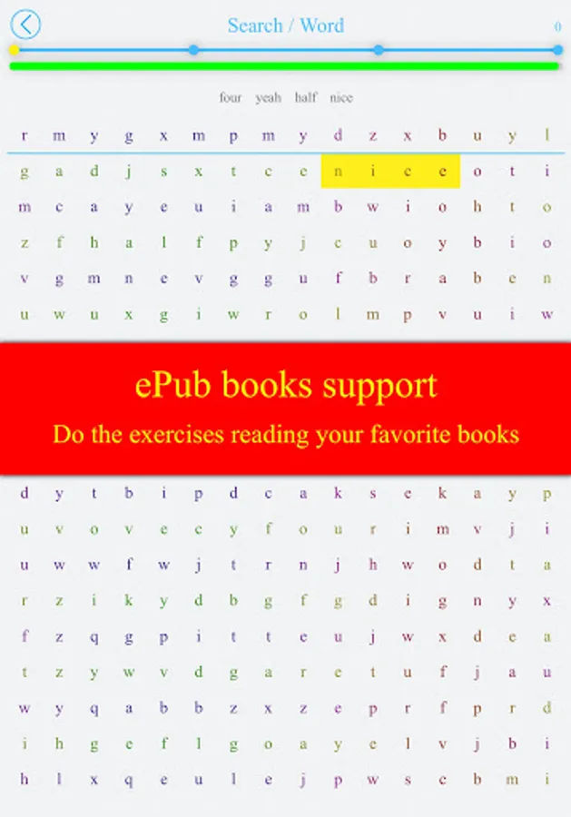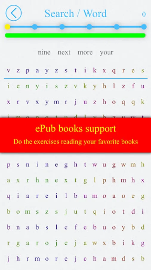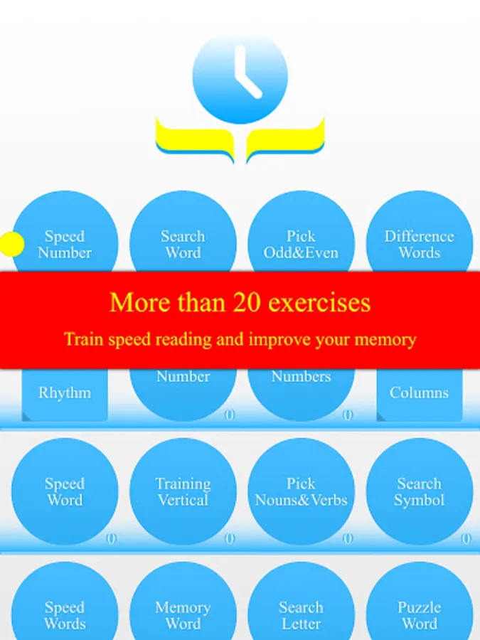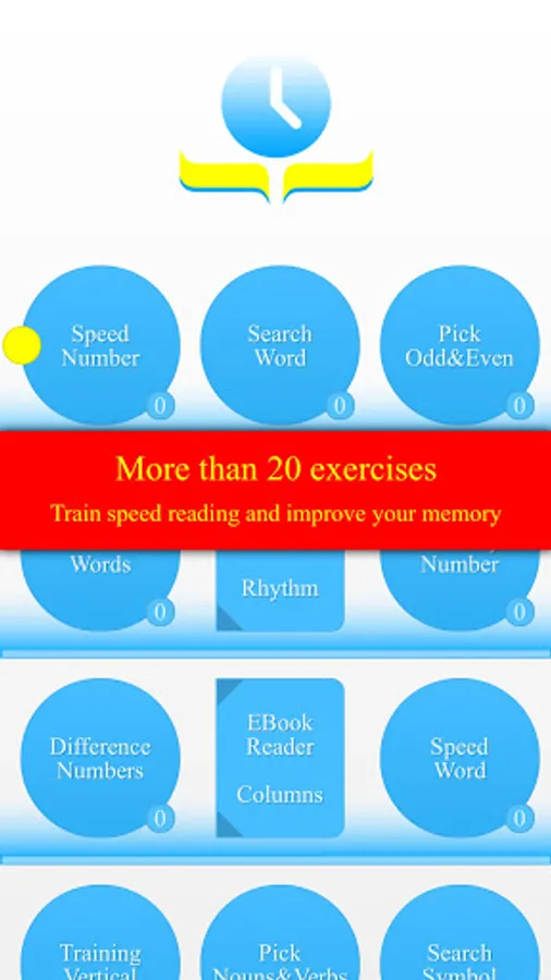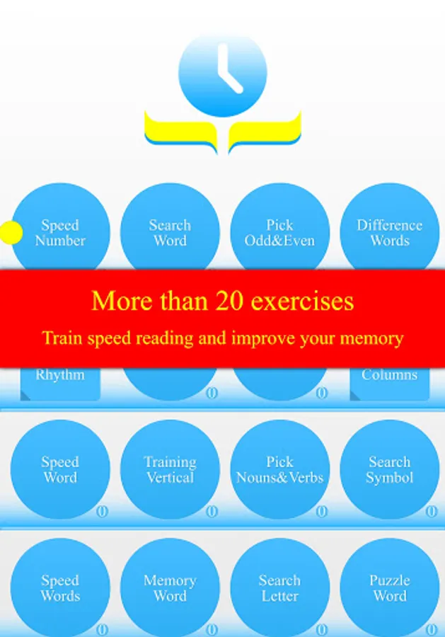 We offer more than 20 exercises to develop the skills of speed reading, memorization, general intelligence and IQ. Some of the exercises support epub, fb2 and djvu books. In these exercises, you can practice and read your favorite books at the same time!