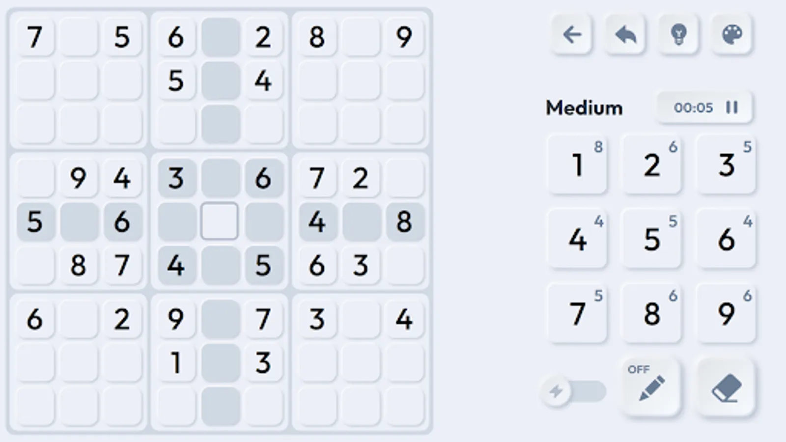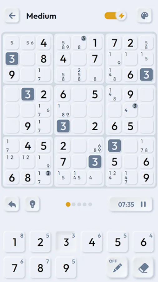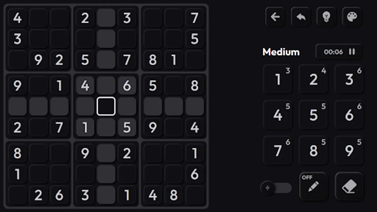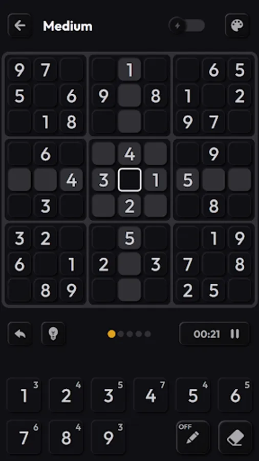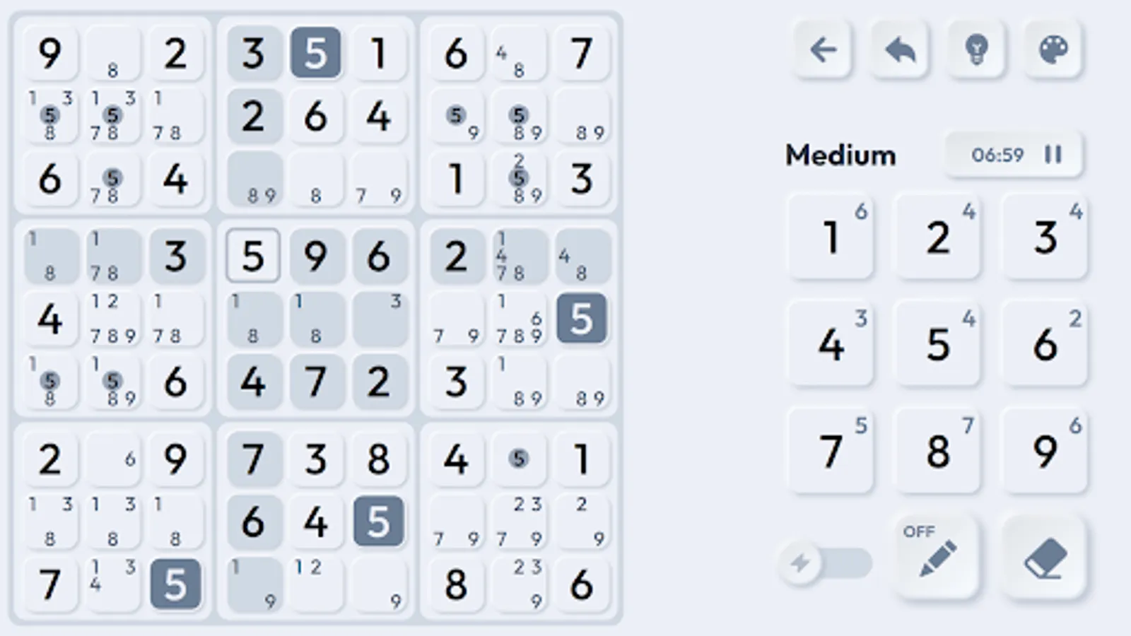 ✓ Use Sudoku autofill feature to show all pencil notes,