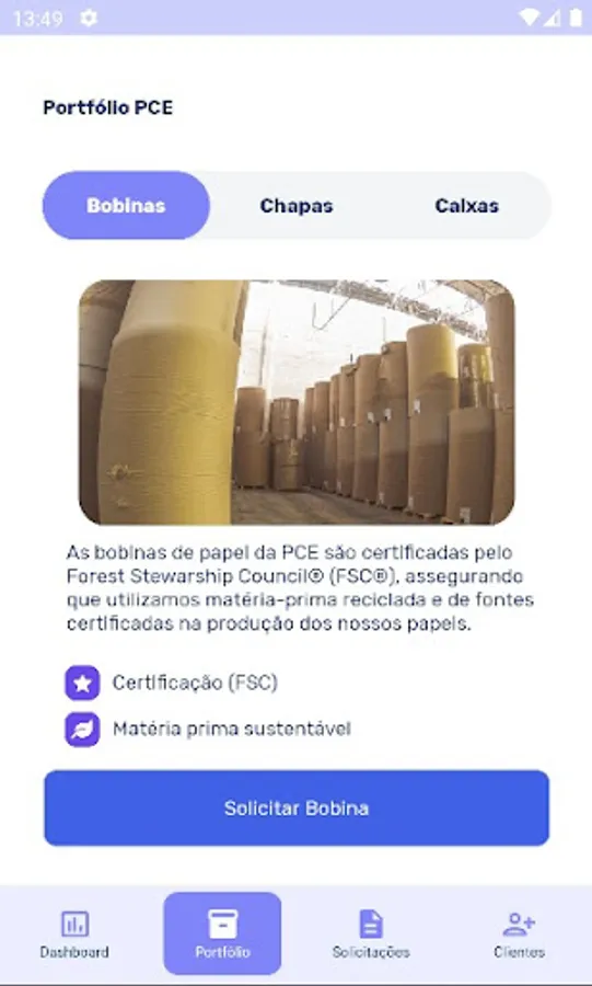Application for sellers to carry out and monitor requests for products from the PCE company.