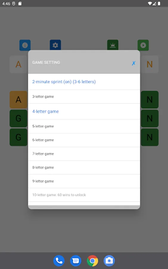- Three game modes. The default game mode has no time limit so that players can relax and take on the challenge of unscrambling words of up to 14 letters. In the fast paced 2-minute sprint and race against time modes, players enjoy uninterrupted, fast-action word scramble games.