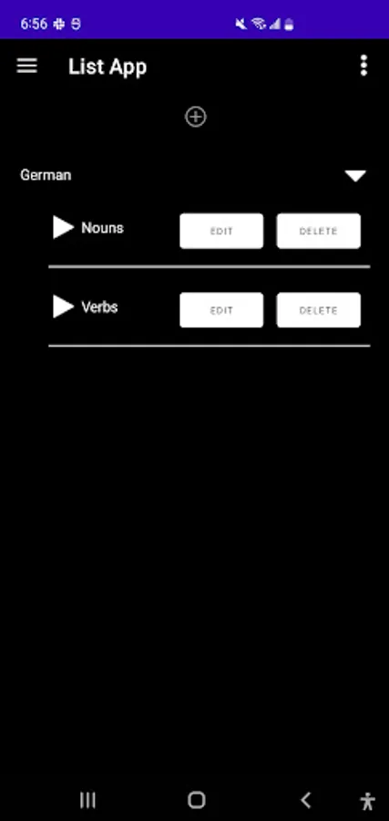 There is a feature that allows for placing related lists together in a collapsible group. One can nest these groups to near arbitrary depth. One creates a group by prefixing the group title to the list title, followed by "::". For example, to create a grouping of German lists, where one wants a list of nouns and a list of verbs, one would name the two lists German::Nouns and German::Verbs.